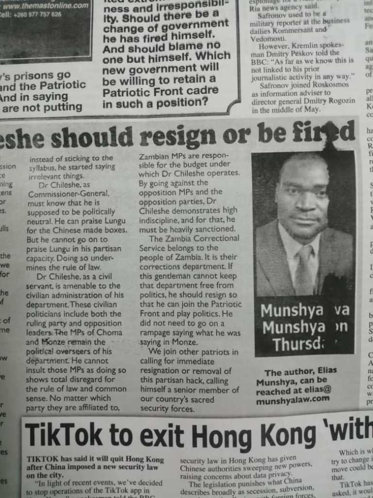 This Article appeared in Zambia’s independent daily – The Mast – on Thursday July 9, 2020. The “Munshya wa Munshya” column appears every Thursday.
